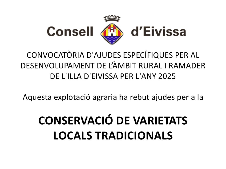 - Línea de ayudas del Consell Insular de Ibiza para la conservación de variedades locales tradicionales de cereales en riesgo de erosión genética y árboles frutales de secano tradicionales.